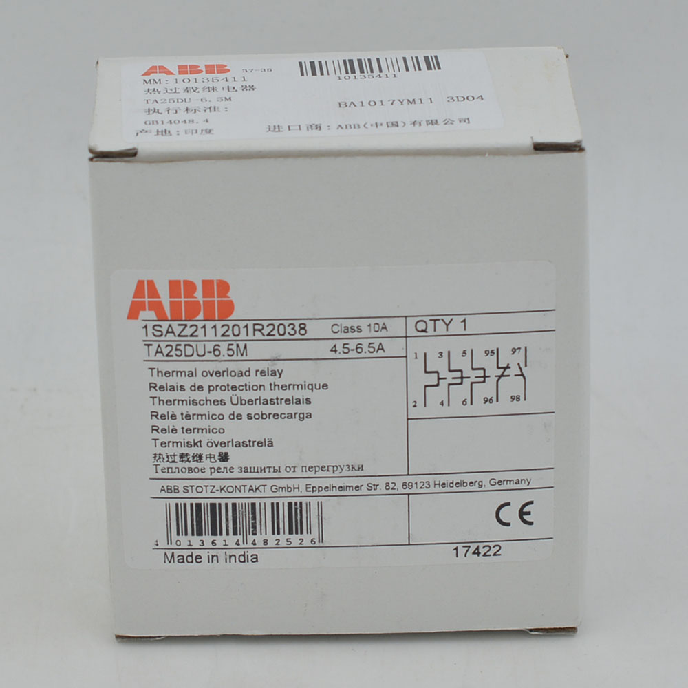 | Descripción | ABB Thermal Overload Relays TA25DU 4.5-6.5A |