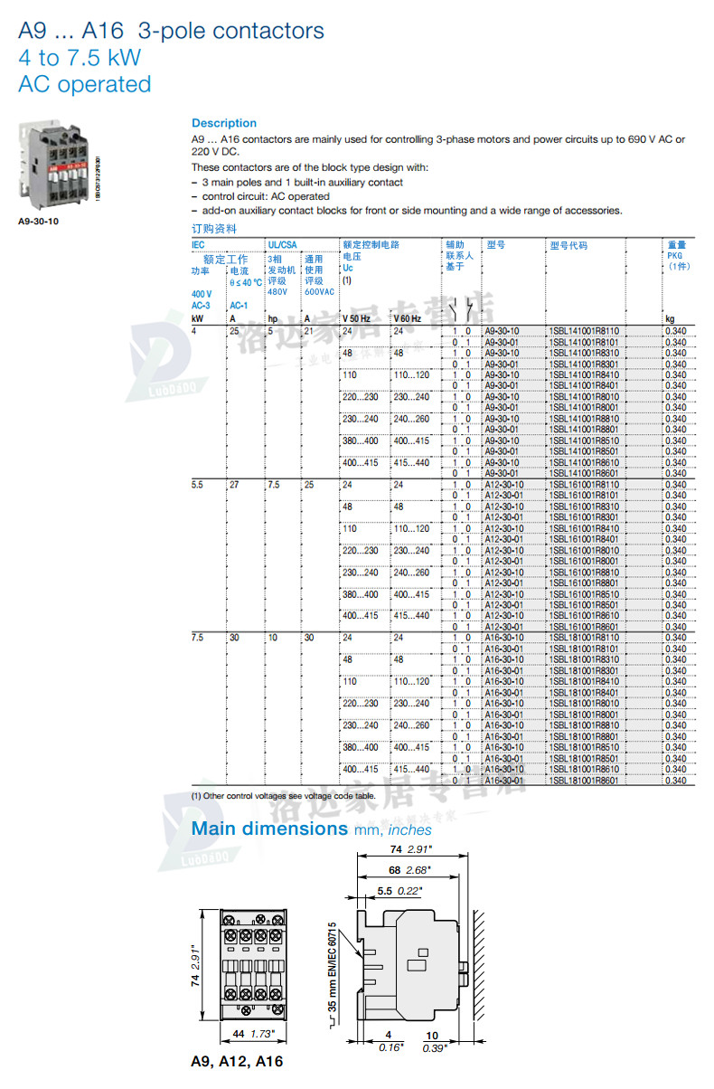 A - line contactor from 9 A to 750 A motor load all have the same design and the application range of the dc/ac, only A small amount of components can meet your demand. It combines the latest electronic design and component distribution characteristics, contains safety, materials and the development of the latest.
